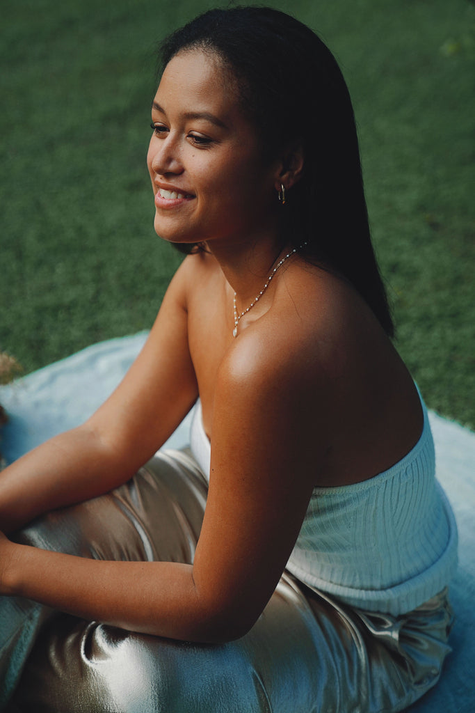 Chaîne forcat perlée blanche délicate terminée par une perle de nacre.